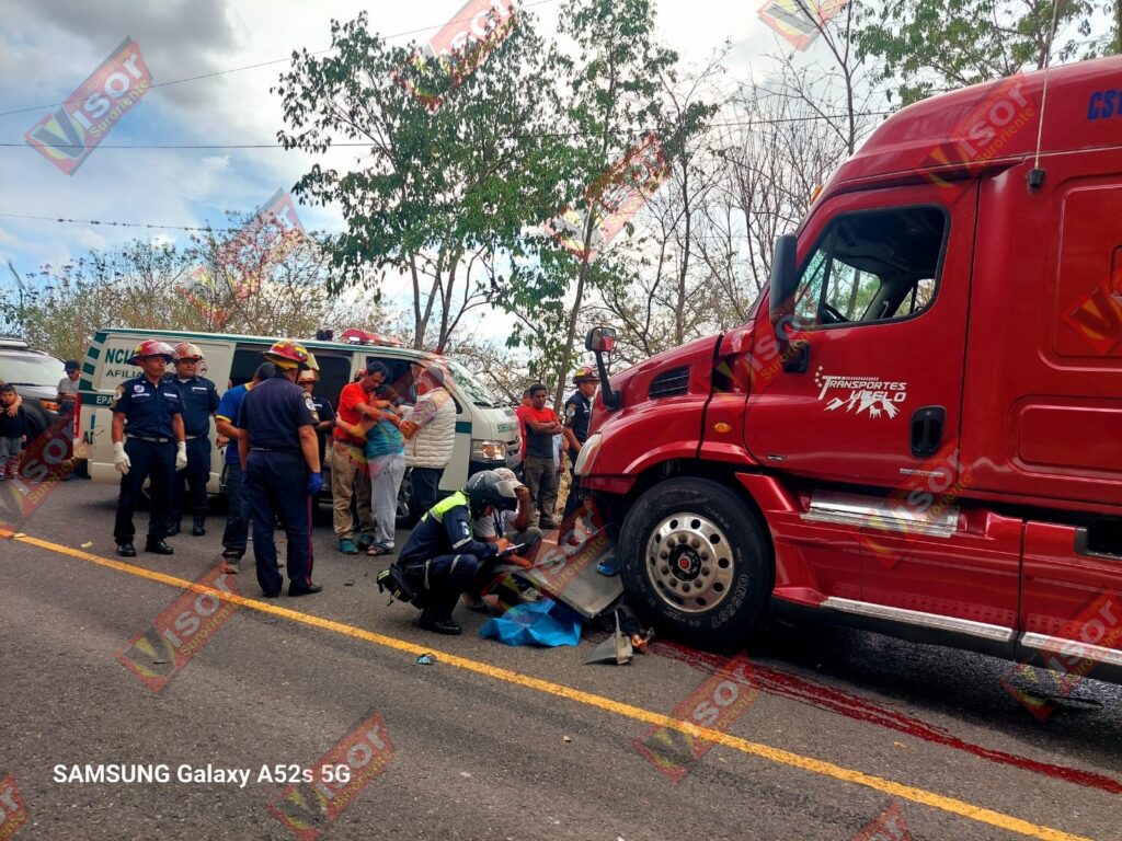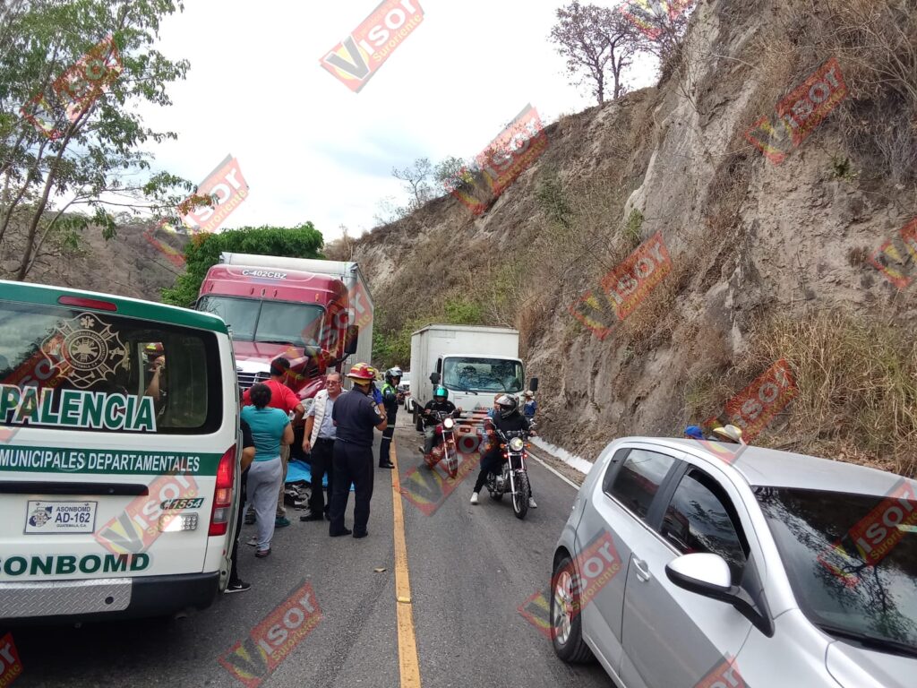 De acuerdo con información brindada por los Bomberos Municipales Departamentales de Palencia, al llegar al lugar localizaron una motocicleta color negro, con placas M-761HVW, la cual quedó atrapada bajo las llantas de un tráiler con placas C-402CBZ.