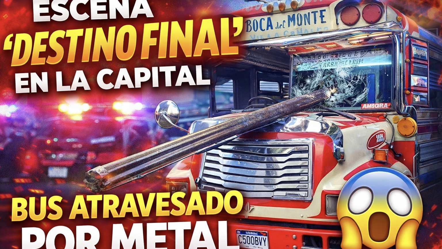Un cabezal con plataforma se encontraba estacionado mientras realizaban la descarga de hierro con una grúa. En ese momento, un bus extraurbano “Aurora”, placas C500BVY, pasaba por el sector cuando, por causas que aún se investigan, parte del material se proyectó y atravesó el vidrio frontal de la unidad.