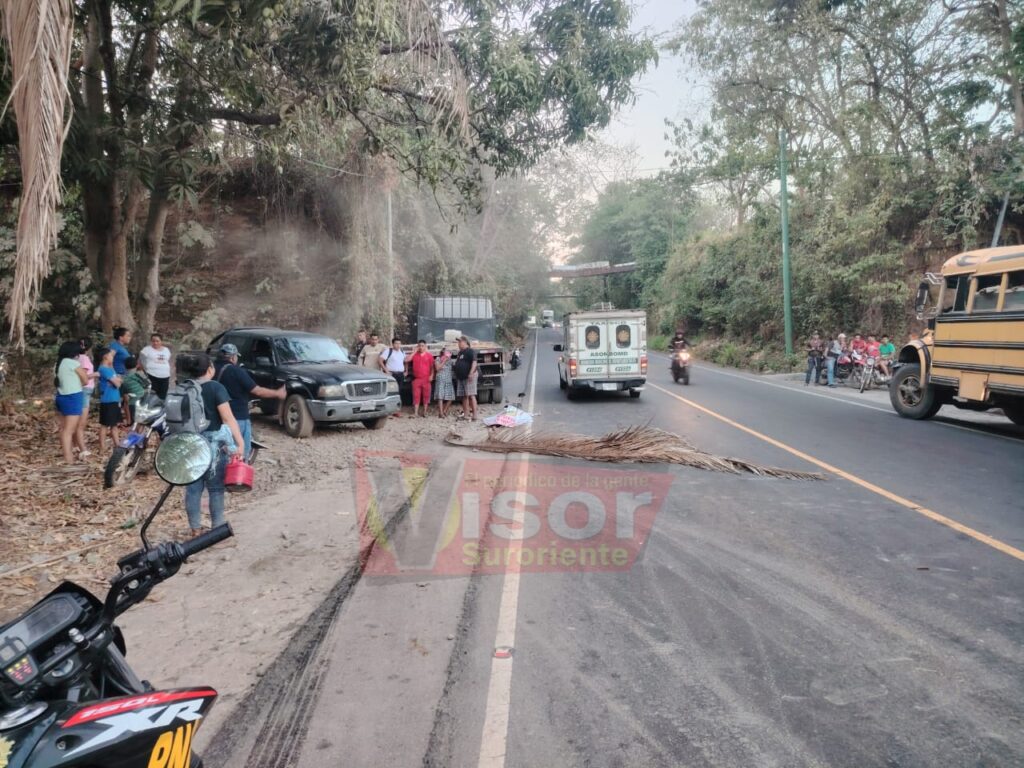 Como resultado del fuerte percance, uno de los ocupantes de la motocicleta falleció en el lugar, siendo identificado como Luis Fernando Gudiel Pineda, de 24 años, residente de Peje Armado, Chiquimulilla, donde vivía junto a su esposa.