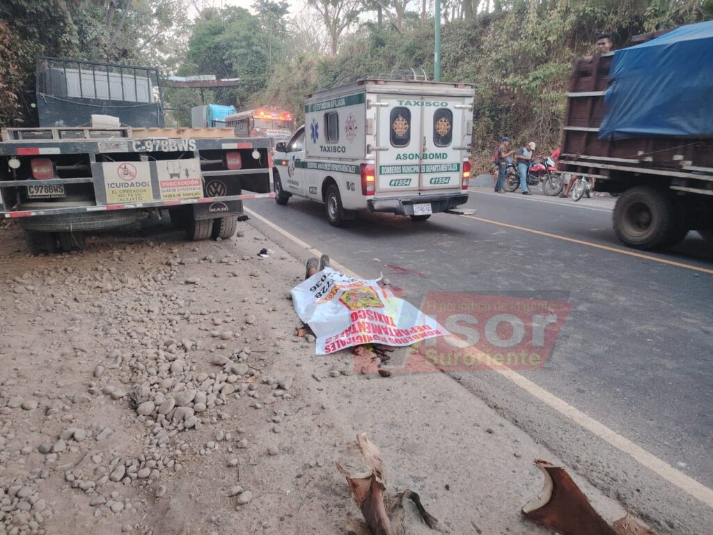 Un trágico accidente de tránsito cobró la vida de un hombre la tarde del jueves 29 de enero en el kilómetro 106 de la ruta que conduce de Guazacapán hacia Taxisco, Santa Rosa en las cercanías de una gasolinera del sector.