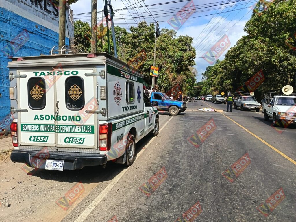 Elementos de los Bomberos Municipales de Taxisco acudieron al lugar del percance. El oficial Manuel Vásquez informó que al momento de evaluar al motorista, este ya no presentaba signos vitales, por lo que se confirmó su fallecimiento a causa de politraumatismo general.