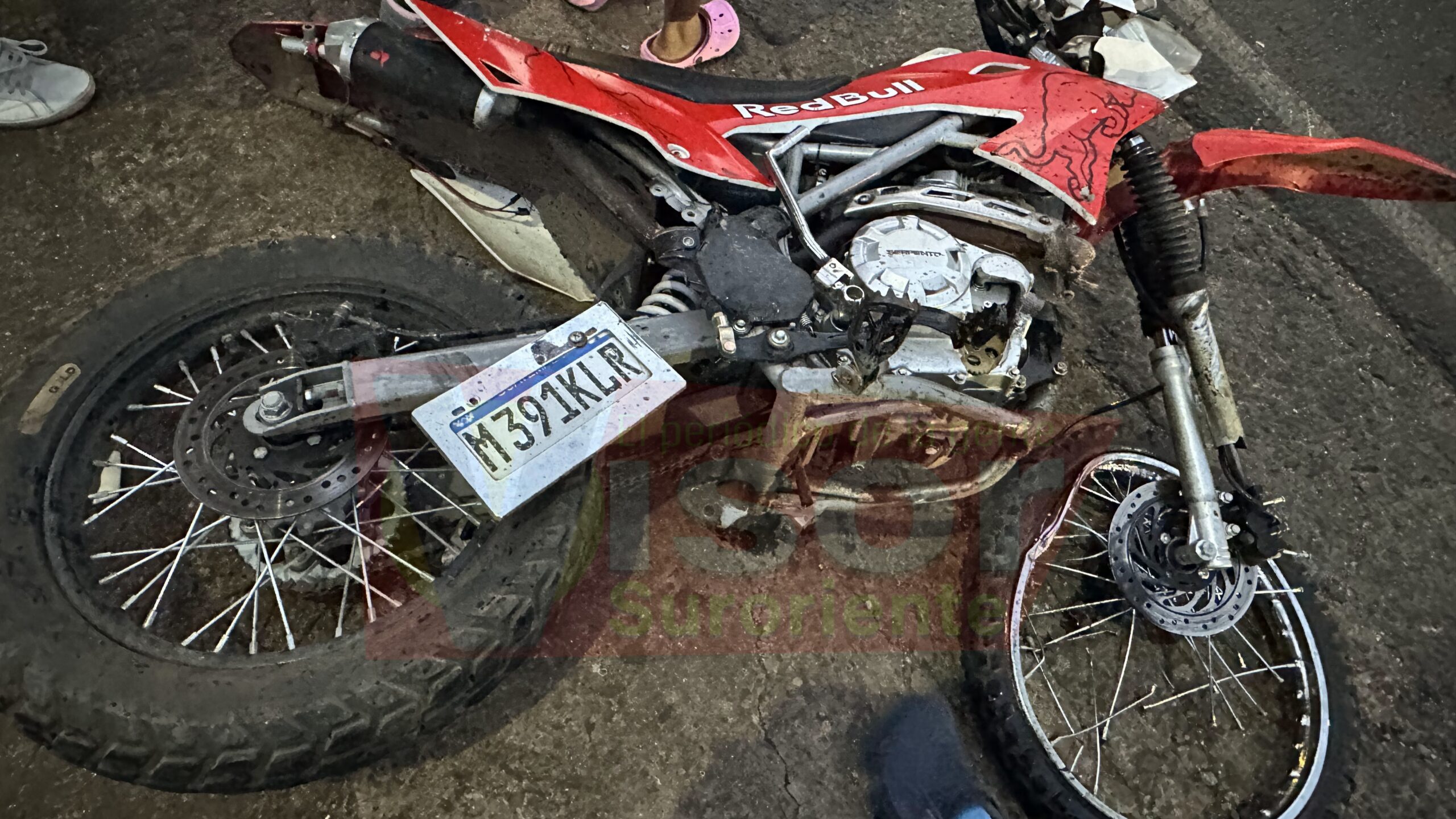De acuerdo con información, la víctima se conducía en una motocicleta color rojo con blanco, placas M391KLR, cuando por causas que aún se investigan impactó contra el costado derecho de un pickup gris, el cual quedó en el ingreso de un taller del área.